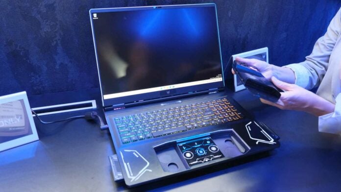 En apparence, l’Acer Predator Project Dual Play pourrait passer pour un portable gaming classique, mais il cache sous sa coque en aluminium une technologie surprenante. Les haut-parleurs 5W qui sortent de l’appareil offrent une immersion sonore enrichie. Cependant, ce qui retient vraiment l’attention, c’est son trackpad amovible. En un geste, il se transforme en manette RGB, idéale pour des sessions de jeu intenses.