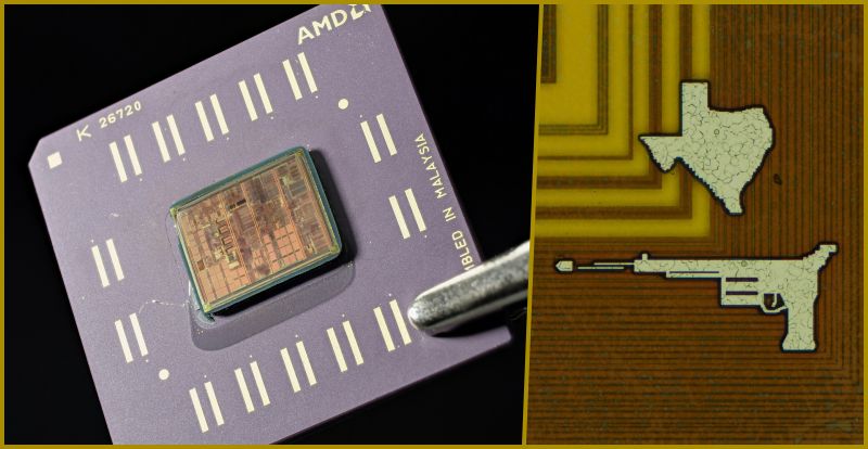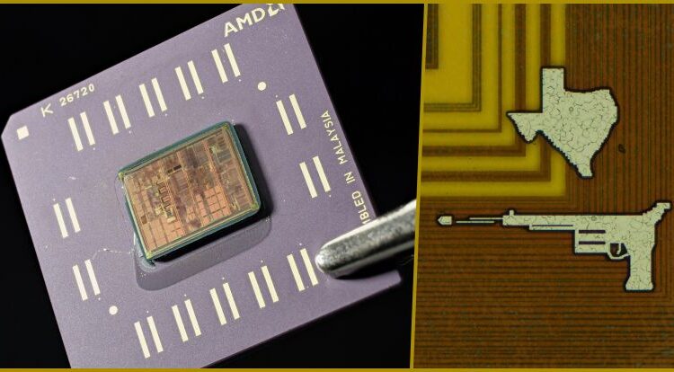 Au moment de sa sortie, il était le processeur x86 le plus puissant, dépassant les Pentium III d’Intel à l’époque. Le pistolet et la carte du Texas ont été une surprise totale et n’ont été découverts qu’aujourd’hui, environ 25 ans plus tard. Mais pourquoi ces dessins ont-ils été ajoutés ?
