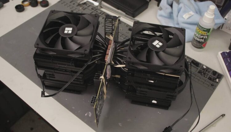 Mais TrashBench ne s’est pas arrêté là. En utilisant un système à double refroidisseur, le coefficient de température du GPU a chuté de 31°C par rapport à l’original, atteignant une température remarquable de 43°C, contre 57°C au point chaud. Cependant, ce système n’est pas compatible avec la plupart des boîtiers PC standards.