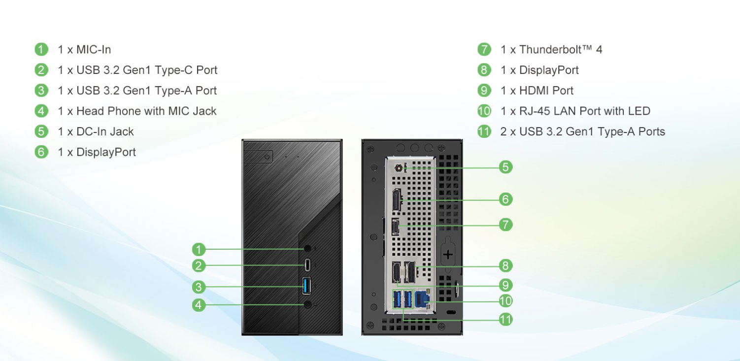 Le DeskMini B860 inclut deux ports DisplayPort 1.4 pour un support de résolutions élevées et de taux de rafraîchissement élevés, un port HDMI 2.1 capable de 4K@120Hz, ainsi qu’un port Thunderbolt 4 pour des dispositifs à bande passante élevée. Le DeskMini X600/USB4 présente une connectivité similaire, mais avec un seul port DP 1.4. Pour les périphériques, les deux modèles offrent de nombreux ports USB Type A et Type C à l’arrière et à l’avant, ainsi qu’une connectivité 2.5G LAN et un emplacement M.2 clé E optionnel pour ajouter un module WiFi.