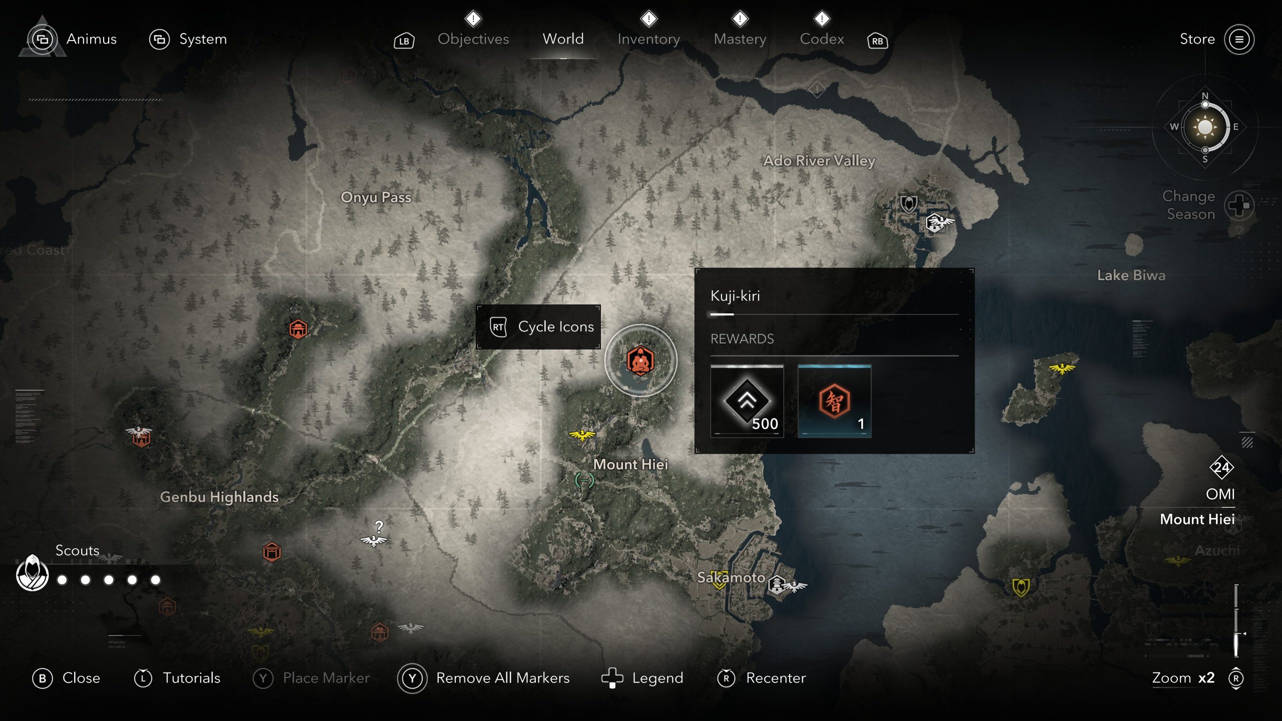 16 – Sur le mont Hiei, au nord de Sakamoto. Pendant la méditation, vous serez attaqué par un ennemi de niveau 40, le Pond Yamabushi. Il est conseillé d’attendre d’être à un niveau plus élevé avant de tenter ce Kuji-Kiri.