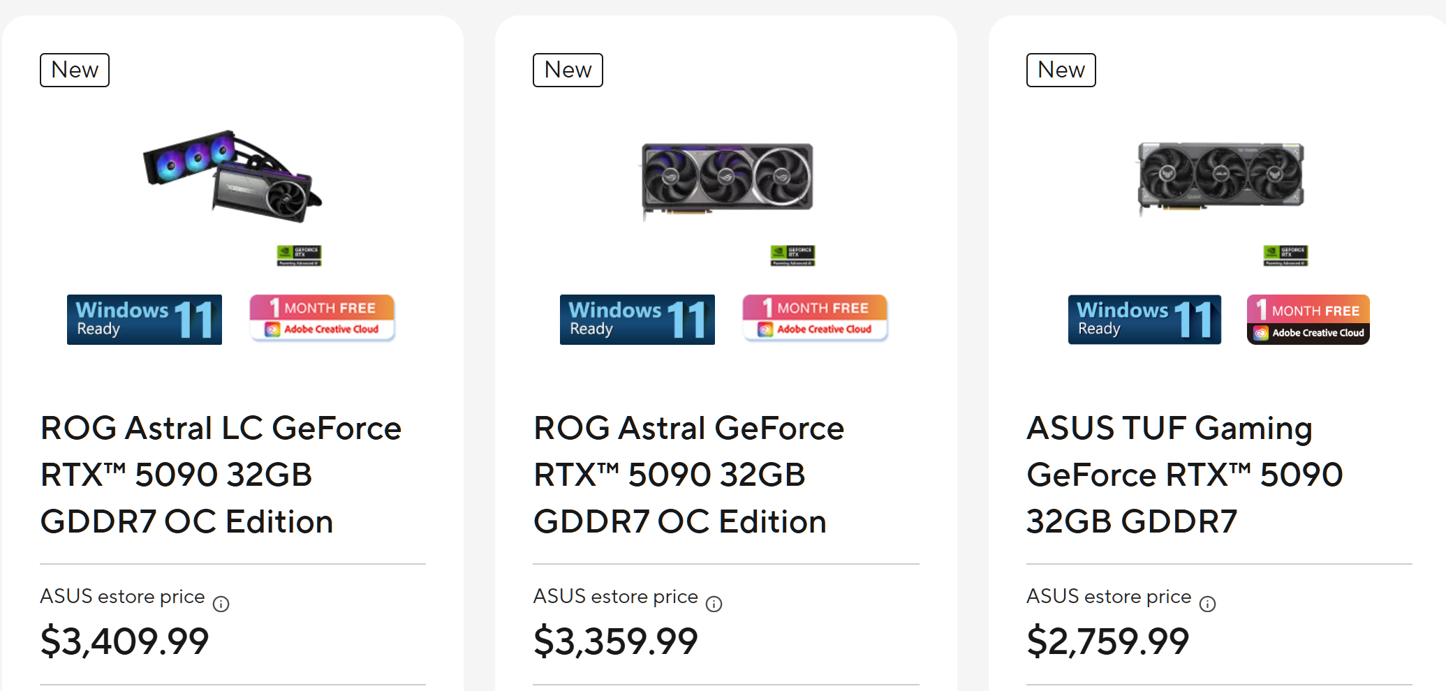 Asus, par exemple, a récemment augmenté le prix de sa GeForce RTX 5090 Astral OC. Elle était déjà à 3 079€ au début de février. À présent, son prix atteint 3 359€, une hausse de 280€. N’oublions pas que le prix de détail suggéré par NVIDIA pour la RTX 5090 est de 1 999€. Bien que des cartes haut de gamme comme celle-ci soient plus chères, l’Astral OC devait normalement coûter 2 800€.