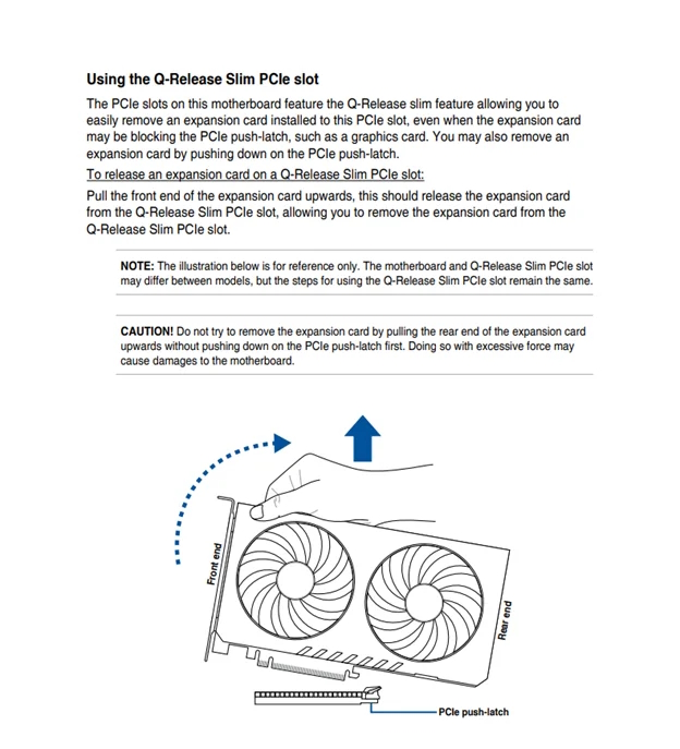 Asus a également souligné que suivre la procédure de retrait appropriée réduit le risque de dommages. Néanmoins, des rapports d’usure après seulement 60 insertions et retraits soulèvent des interrogations sur la durabilité à long terme du mécanisme Q-Release Slim. Normalement, les emplacements PCIe et les connecteurs de cartes sont testée pour un nombre limité de cycles de connexion.