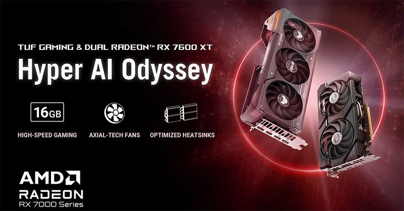 ASUS officialise les modèles Radeon RX 7600 XT DUAL et TUF Gaming, équipés d’AMD HYPR-RX pour nous offrir plus de FPS que jamais.