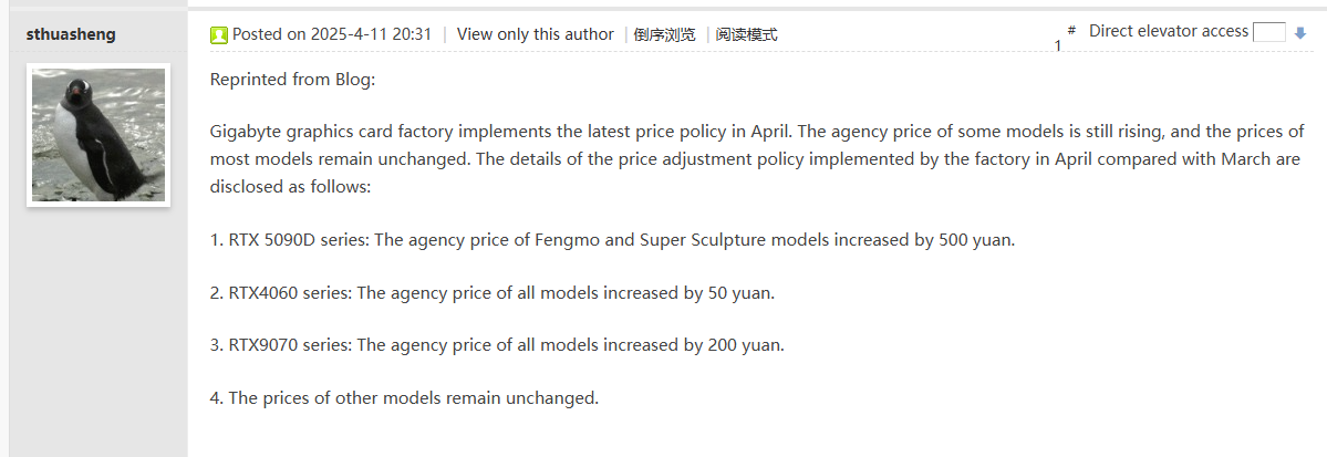 - NVIDIA RTX 4060 Ti – 2 999 CNY → 3 049 CNY (+50 CNY)