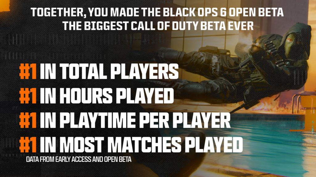 “Merci à ce communauté. Ensemble, vous avez fait de la bêta ouverte de Black Ops 6 la plus grande bêta de Call of Duty jamais réalisée.” Les chiffres le confirment :