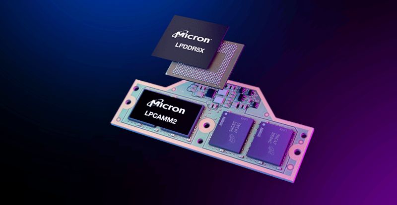 Micron nous a partagé une image de ce à quoi ressembleraient ces nouveaux modules CAMM, qui abandonneront la conception classique de mémoire que l’on peut voir dans les DDR actuelles. Nous pouvons remarquer à première vue que la conception est plus compacte, ce qui facilitera leur intégration dans les ordinateurs de bureau, en économisant de l’espace sur les cartes mères, qui pourra être utilisé par d’autres composants.
