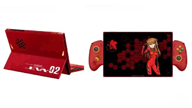 En plus d’être une console de jeu portable, c’est également un PC 2-en-1. Un pied à l’arrière vous permet de surélever l’écran, et un clavier détachable — également inspiré d’Evangelion — peut être retiré rapidement. Les manettes situées de chaque côté de l’écran lui donnent l’apparence d’un insecte avec des ailes trop petites, mais elles peuvent être détachées et utilisées comme manette de jeu.