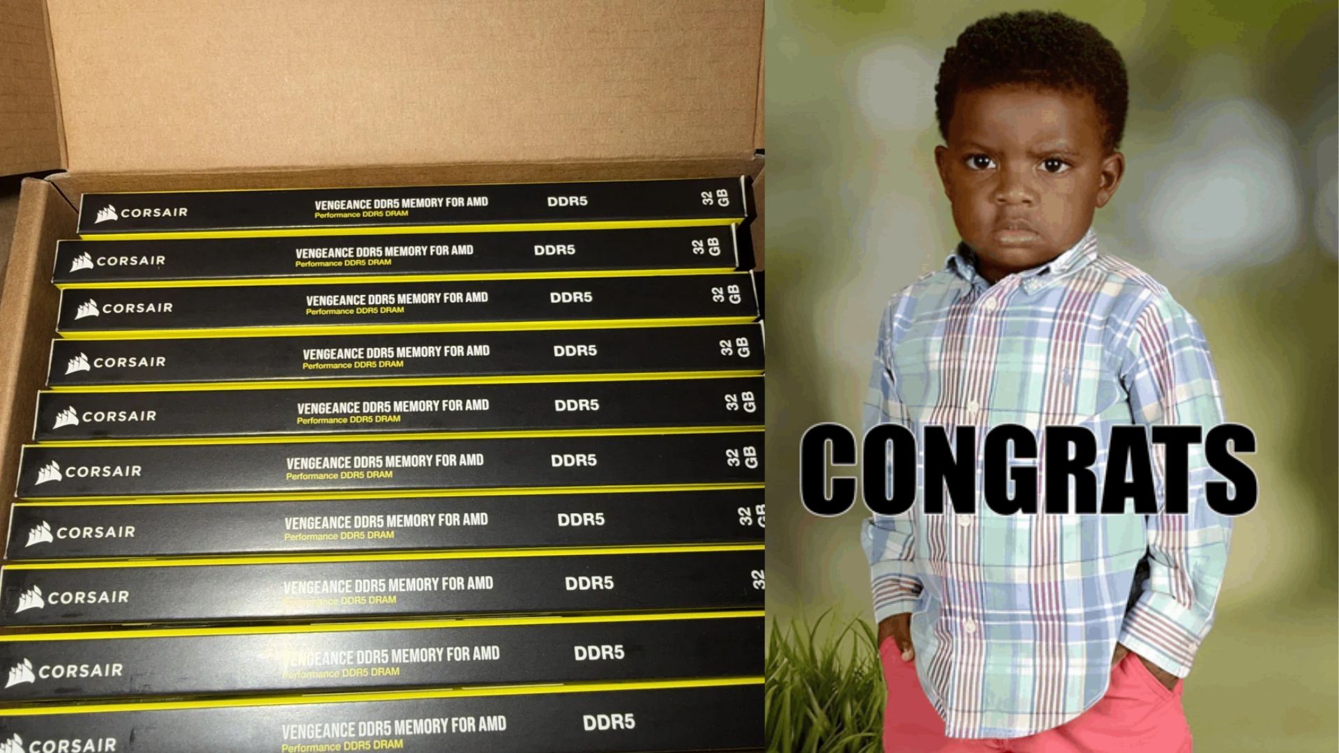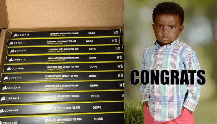 Les récits surprenants du marché de la vente au détail ne manquent pas. Cette fois-ci, un utilisateur de Reddit a commandé un module de mémoire Corsair Vengeance de 32 Go DDR5 pour 300 €. À sa grande surprise, le colis reçu contenait en fait dix modules identiques, ce qui lui a permis d’obtenir dix kits de RAM pour le prix d’un seul.