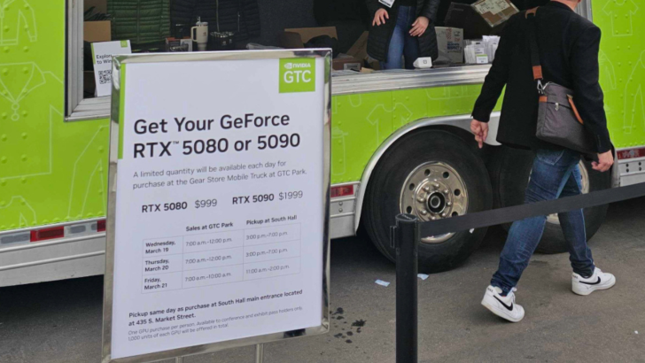 La disponibilité des GPU RTX 5000 est actuellement très limitée pour les consommateurs. Si vous êtes intéressé, dirigez-vous vers le Gear Store de NVIDIA, qui se trouve à GTC 2025. D’après les informations de NVIDIA, les modèles GeForce RTX 5090 et RTX 5080, vraisemblablement dans leurs versions de référence, y seront proposés à prix de vente conseillé (PDSF).