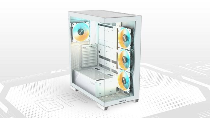 Gigabyte a lancé son boîtier d’ordinateur C500 Panoramic Stealth, qui offre un champ de vision de 270° sur votre hardware. Il utilise deux panneaux latéraux en verre qui s’intègrent harmonieusement dans le coin avant gauche.
