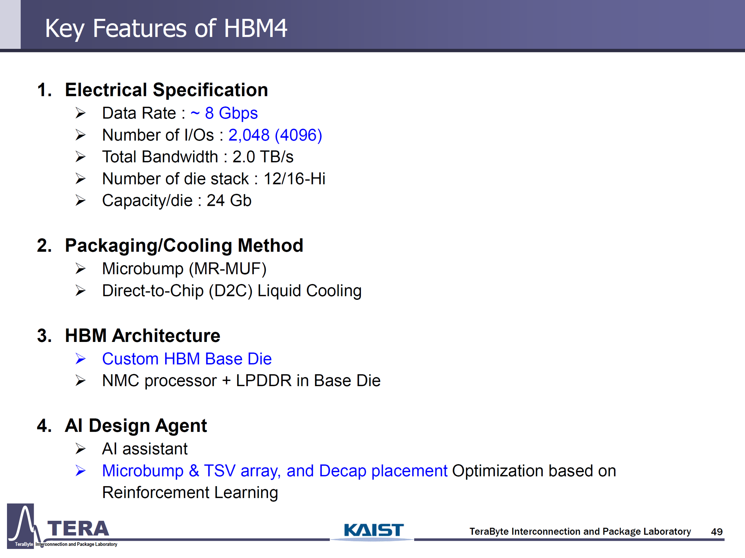 Lors d’une récente présentation, le KAIST et Tera (Laboratoire d’interconnexion et d’emballage de téraoctets) ont esquissé la roadmap pour les HBM. Plusieurs nouveaux standards HBM sont prévus, tels que HBM4 à HBM8, chacun apportant son lot d’innovations à analyser en profondeur.