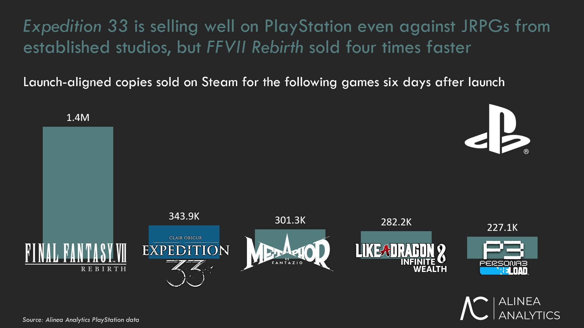 Les ventes sur PlayStation sont cependant différentes, où Final Fantasy VII Rebirth a réalisé quatre fois plus de ventes lors de son lancement. Néanmoins, Clair Obscur: Expedition 33 reste en bonne position. Il n’est pas étonnant de perdre face à Final Fantasy VII Rebirth, compte tenu de l’attente intense entourant ce dernier.
