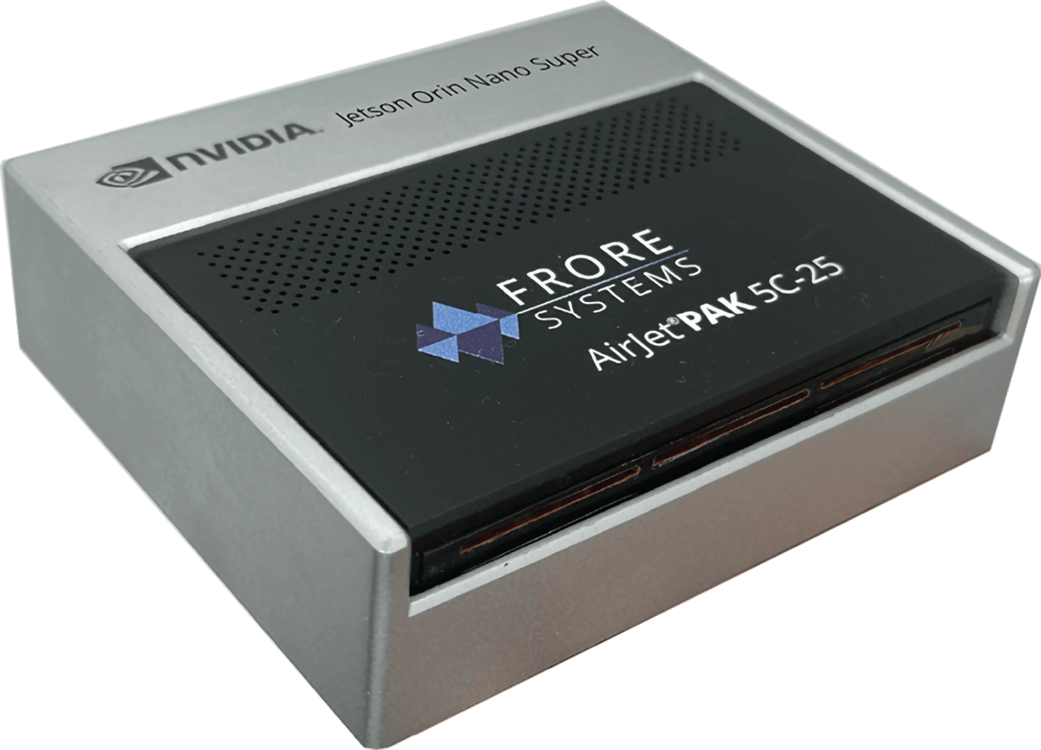Avec l’AirJet PAK 5C-25, Frore Systems propose un module de refroidissement actif et autonome qui se connecte facilement tout en étant compact, silencieux et résistant à la poussière, offrant ainsi une dissipation thermique optimale pour la Jetson Nano Super. Même dans des environnements difficiles, ce système garantit le maintien de performances maximales.
