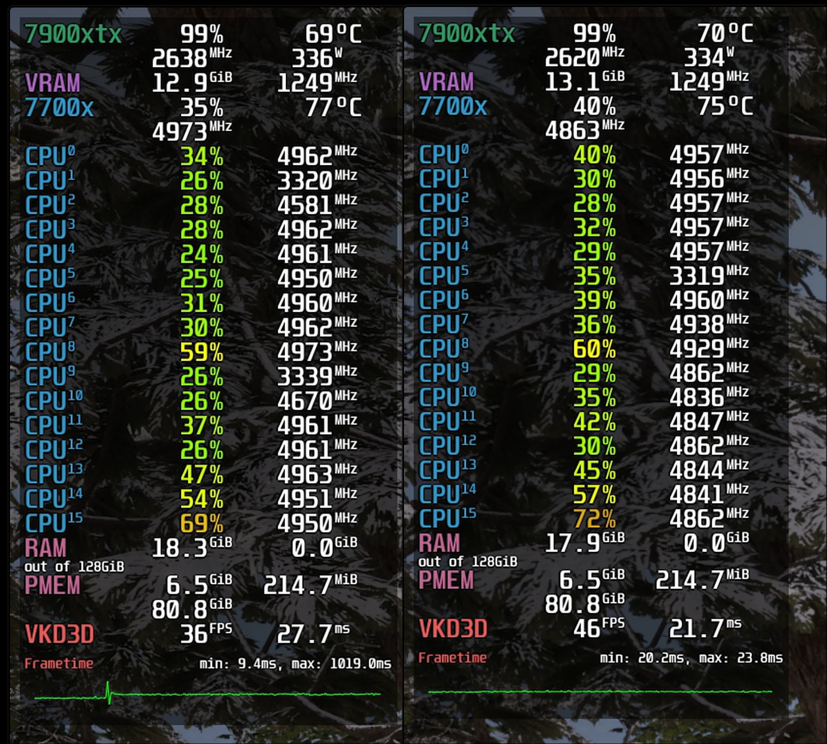 Les tests ont été effectués sur trois jeux : Cyberpunk 2077, Oblivion Remasterisé et Marvel’s Rivals. Réalisés sur Linux, l’utilisateur a également partagé des aperçus de performances pour Windows. Pour implémenter FSR 4, il a utilisé Optiscaler pour injecter les DLLs après FSR 3.1 tout en désactivant la génération d’images.