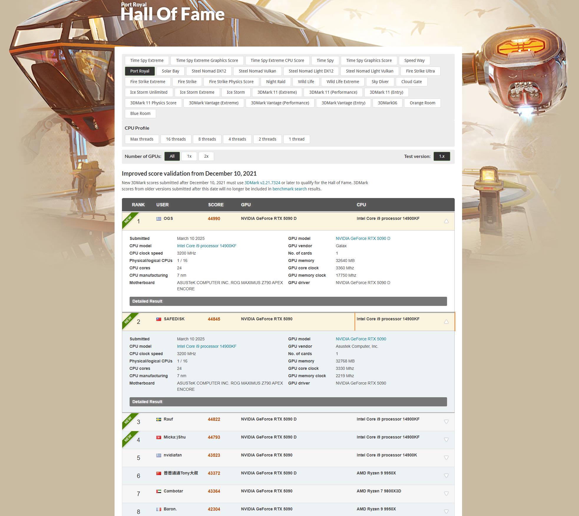 Aux mêmes événements, l’équipe grecque d’overclocking « OGS » a également pulvérisé des records, atteignant 59 072 points dans le projet 3DMark Fire Strike Extreme et 25 040 points dans Unigine Superposition – 8K Optimized.