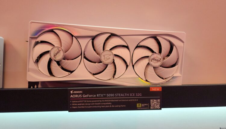 Gigabyte dévoile sa nouvelle carte graphique AORUS GeForce RTX 5090 Stealth ICE, qui arbore un design esthétique sophistiqué en blanc.