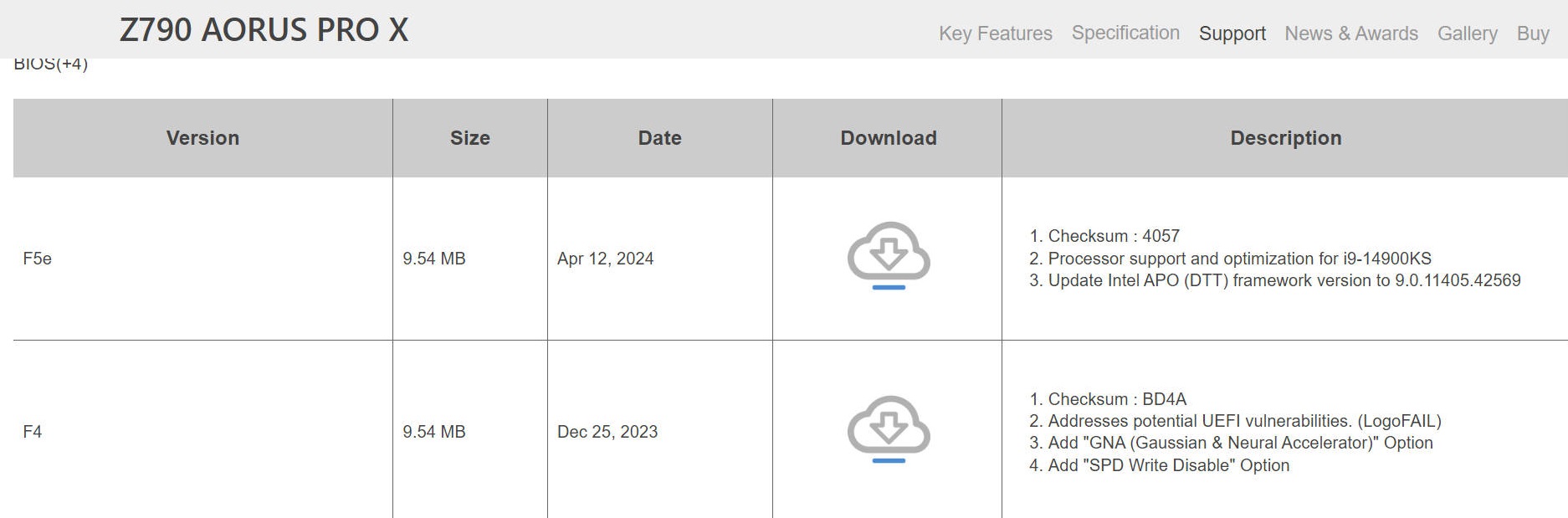 Maintenant, Gigabyte a pris en compte ces préoccupations avec une nouvelle mise à jour du BIOS. Cette nouvelle mise à jour est maintenant disponible en téléchargement pour les propriétaires de cartes mères Gigabyte Z790 et B760. Cette nouvelle mise à jour du BIOS prend en charge le processeur Intel i9-14900KS et la technologie APO d’Intel. L’optimisation des applications Intel a été récemment mise à jour pour prendre en charge les processeurs Intel de 14e, 13e et 12e génération.