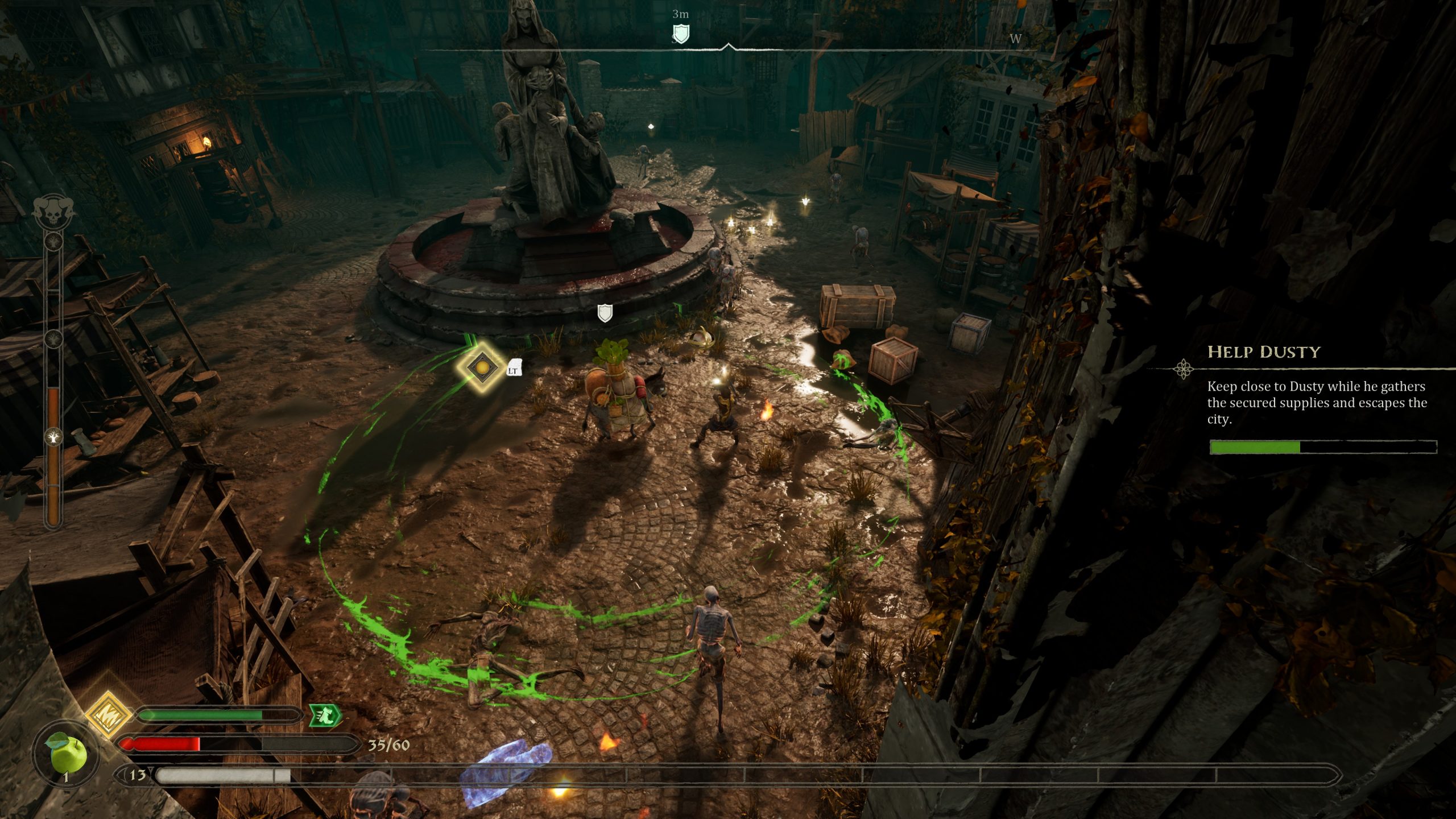 Cette simplicité sert bien Hordes of Hunger, car le jeu pousse les joueurs à constamment affronter les hordes, dont la force varie selon les lieux et le nombre de quêtes complétées. La Place Principale, par exemple, est le point de départ, tandis que d’autres zones comme le Moulin ou la Forêt présentent des ennemis plus complexes, requérant une maîtrise des types d’armes, allant de l’épée au marteau puissant.