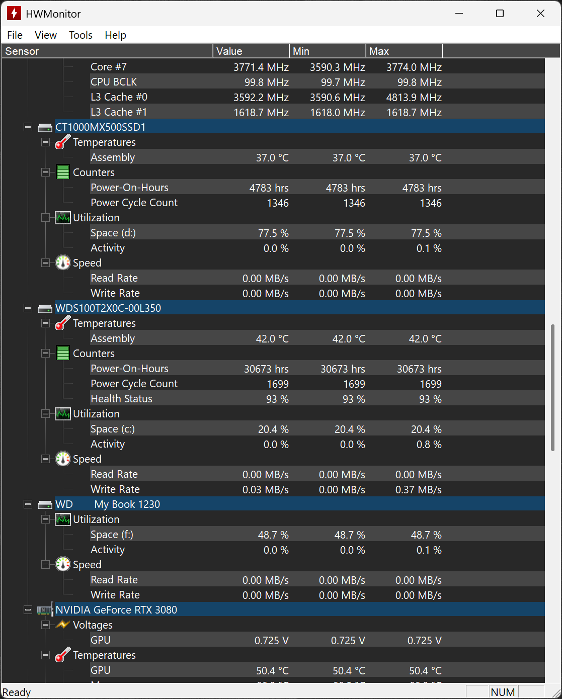 Que vous souhaitiez résoudre des problèmes, effectuer des tests de stress ou garder un œil sur la santé du système, HWMonitor propose des mesures claires et fiables via une interface simple. Idéal pour les passionnés d’informatique, les overclockeurs et les professionnels du secteur. Le programme gère les puces de capteur les plus courantes, comme les séries ITE IT87, la plupart des circuits intégrés Winbond, et d’autres. De plus, il peut lire les capteurs thermiques des cœurs de CPU modernes ainsi que la température des disques durs via S.M.A.R.T et celle des GPU.