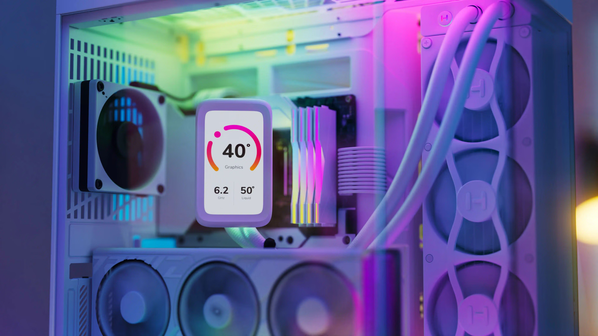 Ce panneau LCD est également doté d’un rétro-éclairage RGB, assurant une visibilité claire des métriques tout en créant un environnement lumineux. Grâce à son logiciel NEXUS 2.0, le THICC Q80 Trio propose une personnalisation des écrans et des effets RGB sans limites. Les utilisateurs peuvent afficher des GIFs, des médias en direct ou même charger des vidéos personnalisées sur l’écran.