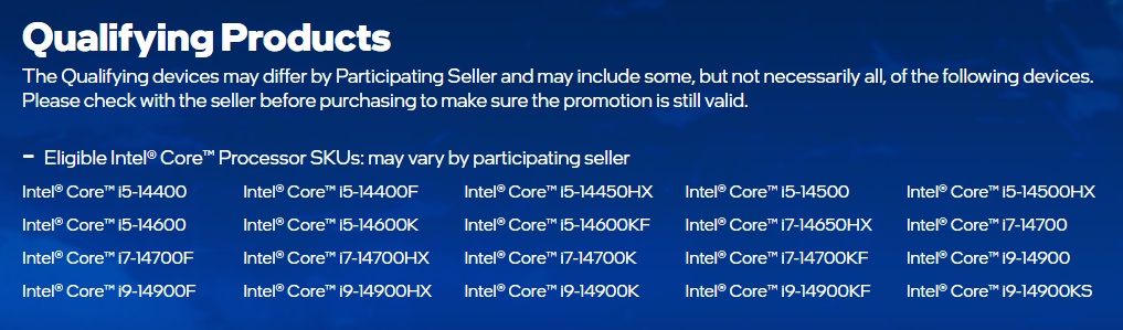 Cette offre sera disponible avec un large éventail de processeurs Intel. Malheureusement, il semblerait que les modèles admissibles puissent varier selon le site de ventes. Néanmoins, il semble que cette offre couvre une large gamme de processeurs.