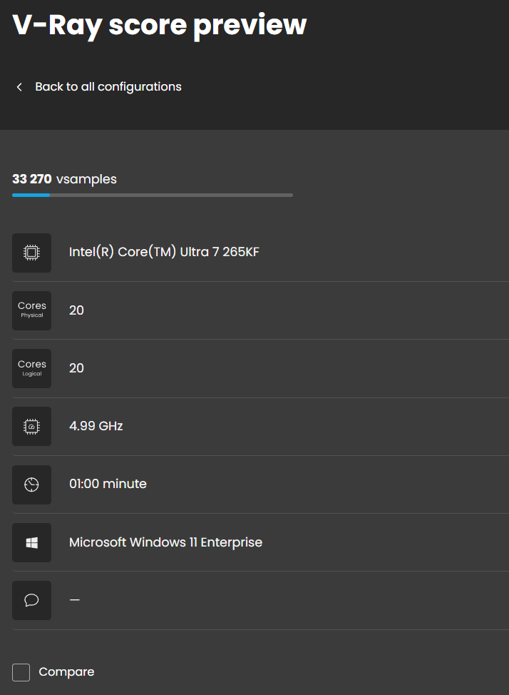 Ce n’est pas la première fois que le Core Ultra 7 265KF apparaît dans les résultats de tests. En plus de benchmarks connus comme Geekbench et AIDA64, il a récemment été testé avec V-Ray. Les résultats montrent une petite avance par rapport à son prédécesseur, soulignant l’efficacité d’Intel à affiner sa technologie.