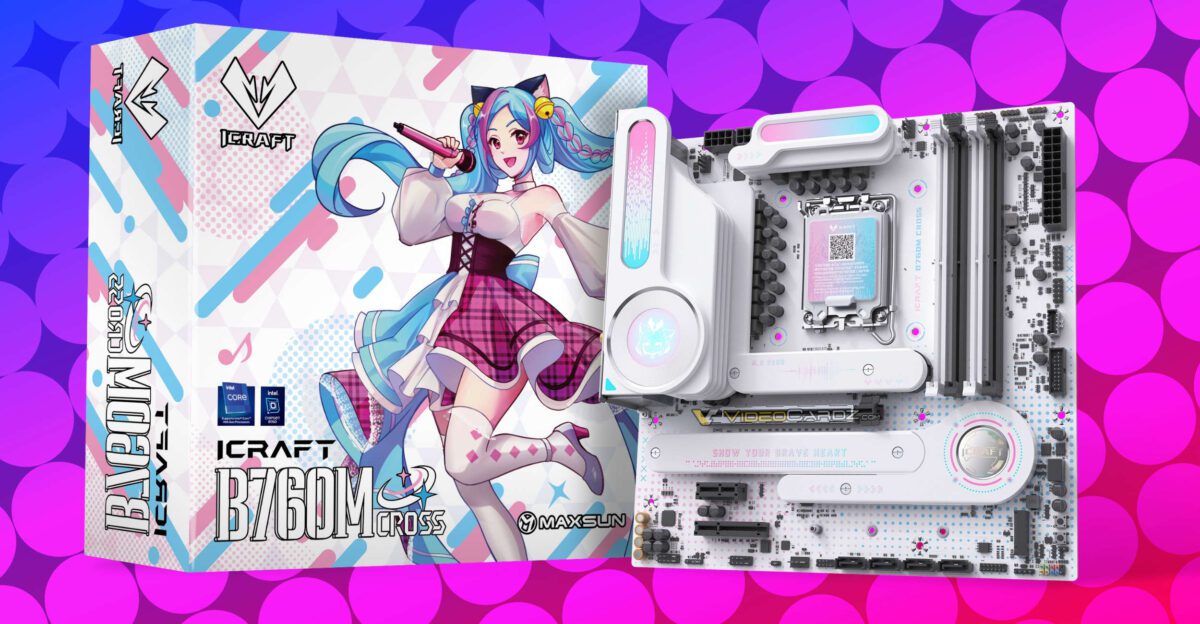 Toutes les cartes mères ne doivent pas être ennuyeuses. Le constructeur chinois Maxsun s’assure que leurs produits se démarquent, avec leur dernier modèle, le iCraft Cross, donnant une nouvelle vie à la plateforme LGA1700 d’Intel. La nouvelle carte mère Micro-ATX B760M est attrayante avec sa base blanche et son design pointillé violet et bleu sur le PCB. Il présente un design de dissipateur thermique arrondi unique, une première pour Maxsun.