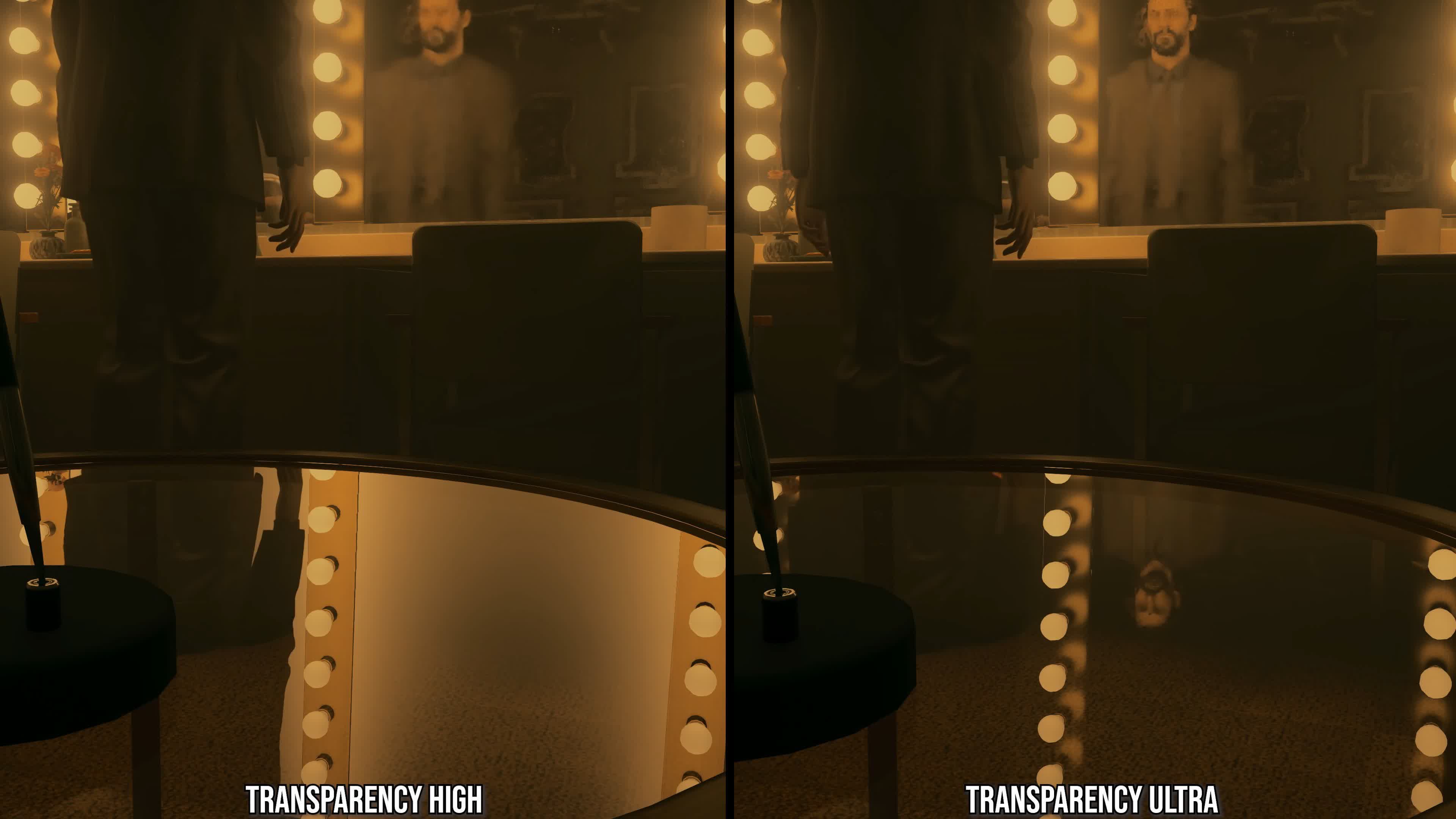 Mega Geometry est également plus précis avec les objets qui s’animent ou qui changent fréquemment de nombre de polygones lorsque les joueurs déplacent la caméra, ce qui la rend idéale pour l’implémentation de mesh shading d’Alan Wake 2. Ainsi, le ray tracing a une meilleure apparence lorsqu’il est appliqué à la végétation en mouvement, aux surfaces tessellées, ou à d’autres objets en mouvement. Bien que les cartes RTX 4000 et 50 ne bénéficient d’aucun gain de performance de la fonctionnalité, elles voient toujours une qualité d’image améliorée sans coût supplémentaire.