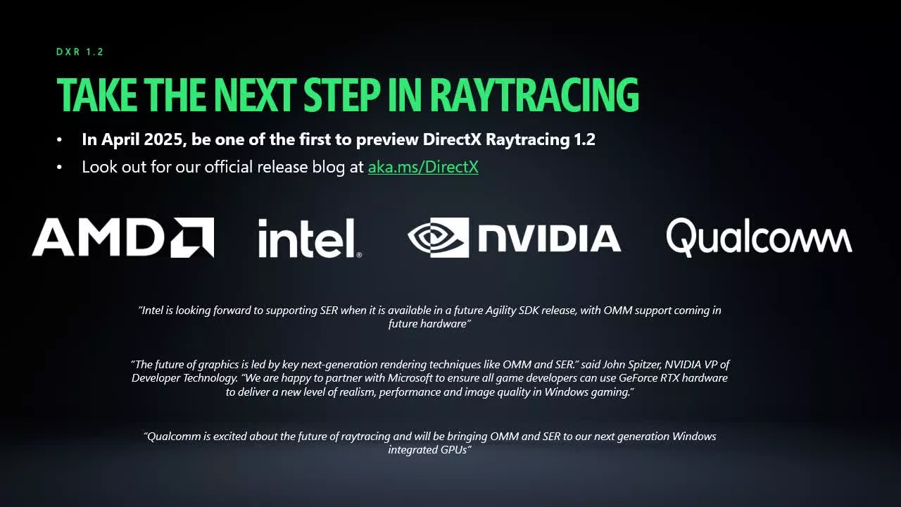 Le rendu neural de DirectX et le support des vecteurs coopératifs sont apparus pour la première fois en janvier. Microsoft a expliqué que le rendu neural optimise les opérations matrices-vecteurs pour l’entraînement de l’IA et permet à des réseaux neuronaux plus petits de fonctionner efficacement lors des processus de shading des GPU.