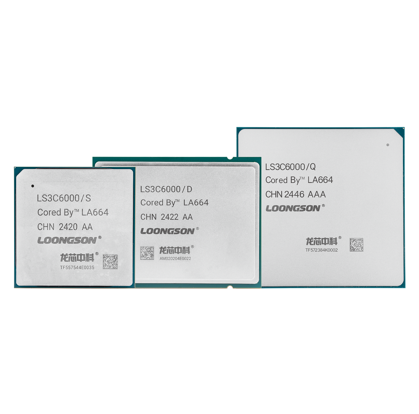 Le modèle phare, la série 3C6000, utilise la 4ème génération d’architecture CPU avec des cœurs LA664. Elle est divisée en trois sections : la série « S » avec un seul chiplet, la série « D » avec deux, et la série « Q » avec quatre chiplets. Chaque chiplet comprend 16 cœurs, offrant ainsi 16, 32 ou jusqu’à 64 cœurs. Les vitesses d’horloge oscillent entre 2,0 GHz et 2,2 GHz, avec l’interconnexion des chiplets via Dragonchain.