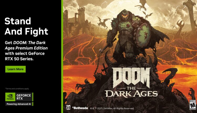 NVIDIA a récemment annoncé une offre spéciale pour les cartes graphiques GeForce RTX 5000 Series avec le bundle DOOM: The Dark Ages. L’achat d’un modèle RTX 5090, 5080, 5070 Ti, ou 5070, que ce soit en version bureau ou portable, donne droit à un code digital gratuit pour la Premium Edition du jeu.
