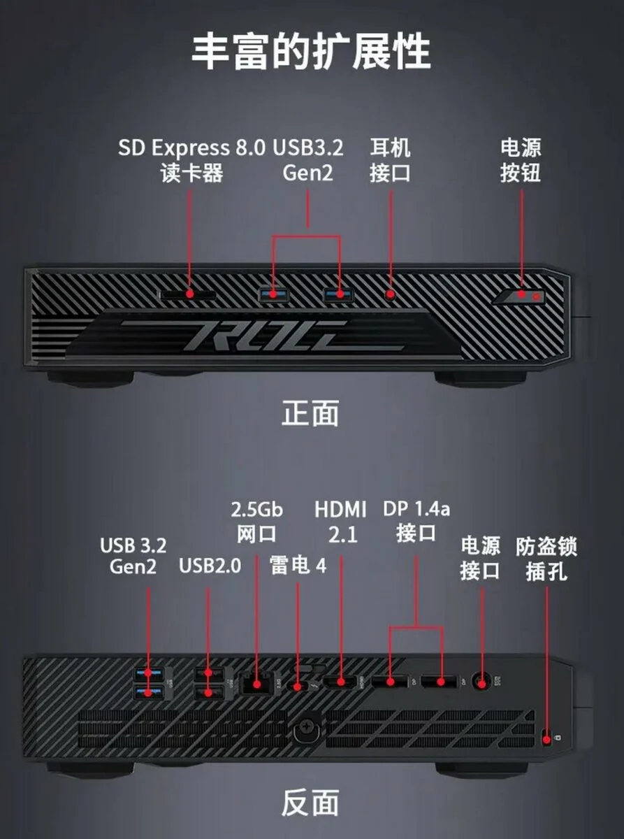 L’unité mesure seulement 270 mm x 180 mm x 50 mm, et vous pouvez la placer horizontalement ou verticalement. Il y a aussi l’éclairage ROG Aura Sync si vous voulez un peu de bling pour égayer votre journée. C’est un véritable saut visuel par rapport à ce que ils ont vu au CES.