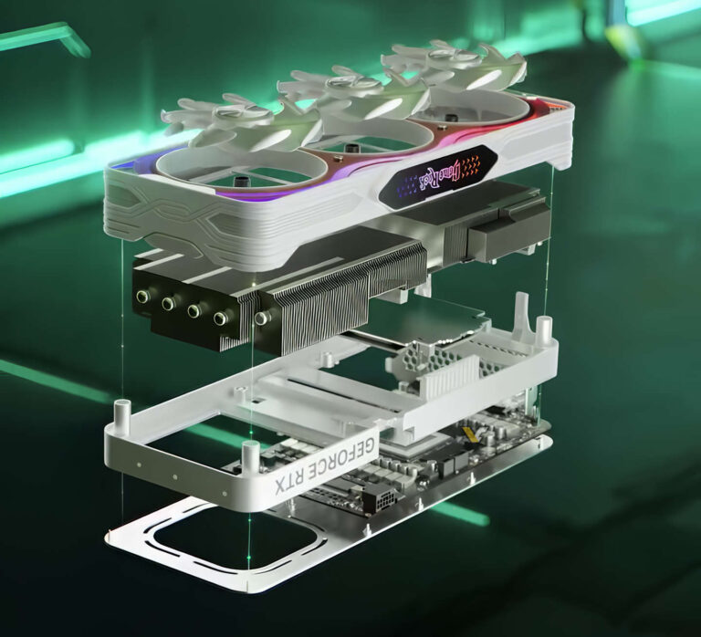 Leur dernier post sur les réseaux sociaux révèle une nouvelle carte dans une combinaison de couleurs blanche et noire. Le carénage avant semble être violet/rose avec des bandes LED sur toute la longueur du design. Il présente un refroidisseur à trois ventilateurs qui semble s’insérer dans un design de 3 à 3,5 emplacements.