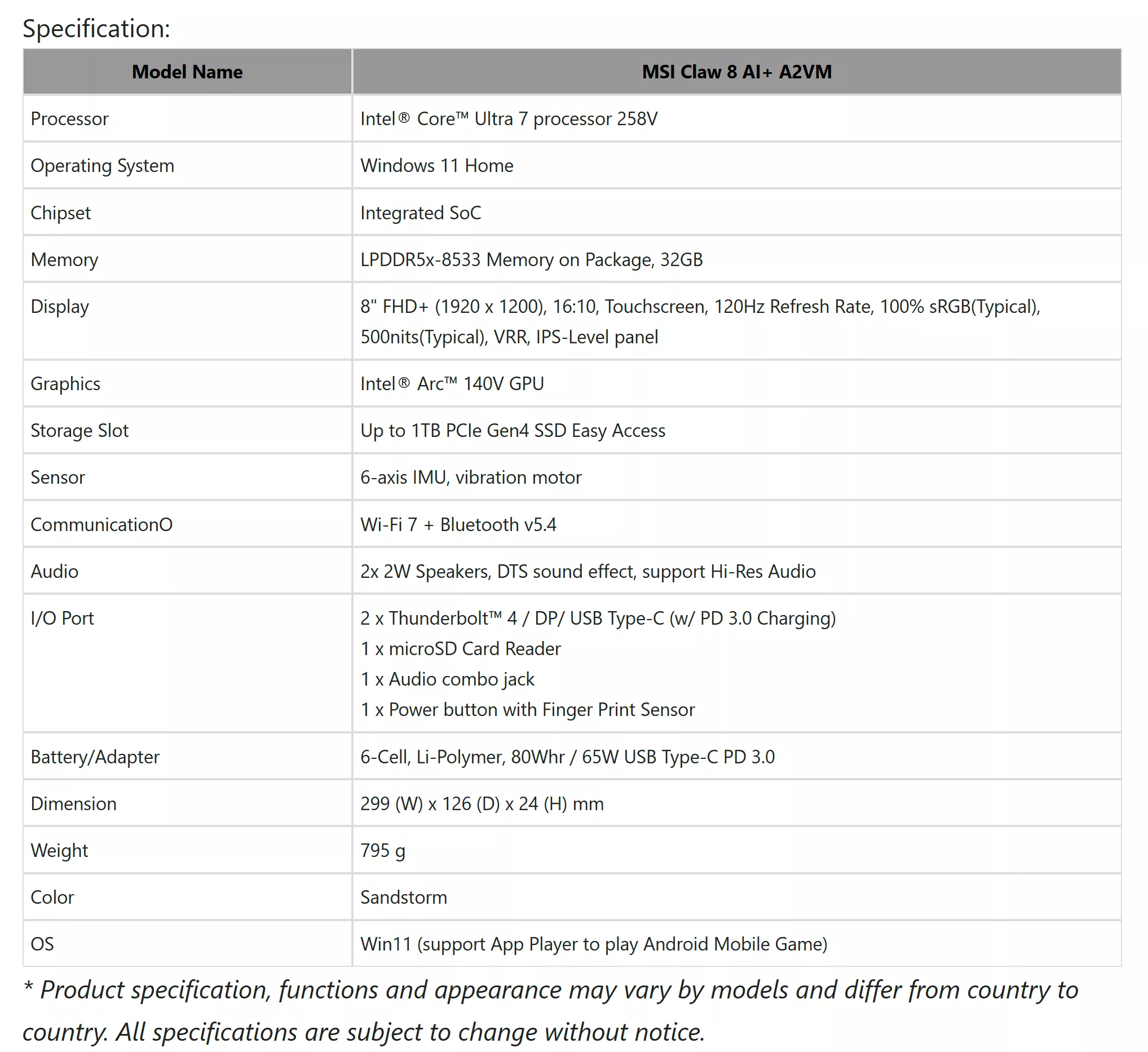 Les appareils Claw AI+ pourraient également bénéficier d’une durée de vie de batterie prolongée grâce à de nouvelles batteries et à une meilleure efficacité énergétique. Bien que la batterie de 54.5Whr du Claw 7 soit similaire à celle de son prédécesseur, celle du Claw 8 est évaluée à 80Whr.