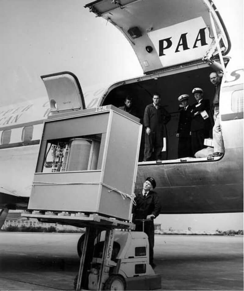 Expédiée en septembre 1956, la première unité de disque dur de 5 Mo pesait plus d’une tonne (environ 1 000 kg) et était utilisée dans l’IBM 305 RAMAC, le premier ordinateur commercial à posséder un disque dur à tête mobile.