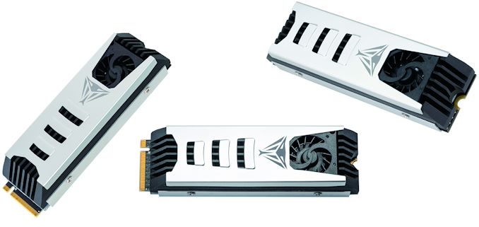 Les disques sont disponibles au format M.2-2280 et sont compatibles avec les ordinateurs de bureau disposant d’un espace suffisant, car les disques SSD Viper PV553 de Patriot sont équipés d’un système de refroidissement plutôt extraordinaire pour dissiper 11 W de puissance thermique. Le refroidisseur (d’une hauteur de 16,5 mm) est doté d’un radiateur en aluminium assez grand qui recouvre à la fois le contrôleur et les puces mémoire, d’un ventilateur soufflant, de coussinets thermiques de chaque côté du disque et d’un boîtier en aluminium – que l’entreprise appelle bouclier thermique – qui dirige l’air produit par le ventilateur à travers les ailettes du radiateur pour maximiser les performances de refroidissement.