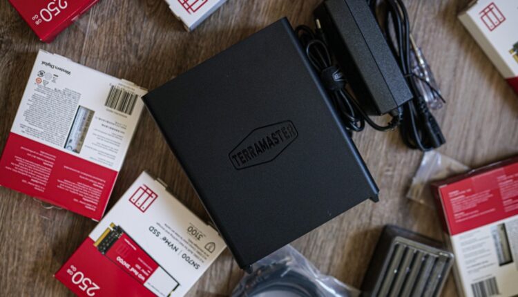 Passer de mon mini PC sous Windows et de mon stockage externe familier à un véritable NAS a été un peu étrange. Terra Master rend l’expérience facile, toutefois. Quant à l’installation des disques, le processus est simple. Il y a une petite vis à l’arrière de l’appareil que vous pouvez dévisser avec vos doigts pour libérer le boîtier extérieur. À l’intérieur, vous trouverez vos huit emplacements de disque.