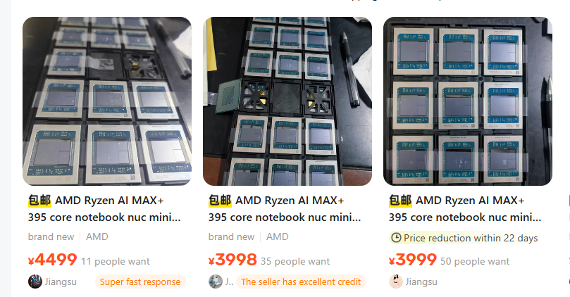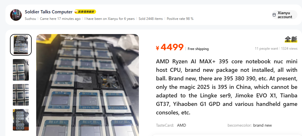 Il est fascinant de déterminer comment ces unités BGA ont été proposées à la vente. Cela pourrait résulter d’un accès par des personnes sur les lignes de production, ou d’un intégrateur tiers qui souhaite les utiliser dans ses produits. Sur la plateforme de vente chinoise Goofish, plusieurs annonces vendent les processeurs Strix Point, avec des prix allant de 3998 CNY à 4449 CNY, soit environ 550 € à 650 €.