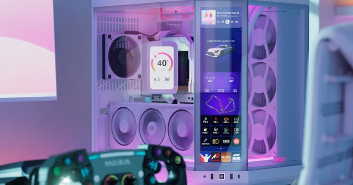 Hyte a pris une direction différente avec ses PC. En plus de son esthétique kawaii, il propose également une gamme de nouveaux boîtiers dotés d’un écran tactile géant à l’avant. Ils sont utilisés dans diverses configurations pour illustrer différents looks avec différents types de hardware. Ces écrans peuvent lire des vidéos ou afficher des informations utiles sur le système — cette technologie est déjà présente dans le refroidisseur de processeur Q80 de Hyte, mais elle s’étend maintenant à de plus grands designs de boîtiers.