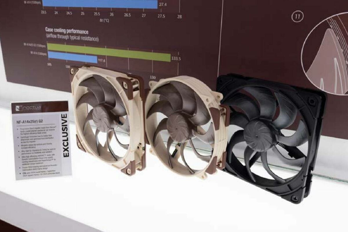 Pour ceux qui souhaitent mettre à niveau leur refroidisseur existant ou leurs ventilateurs de système, Noctua a présenté son NF-A14x25 G2 fabriqué en polymère à cristaux liquides. Le matériau offre soi-disant une plus grande rigidité, permettant aux pales de se rapprocher beaucoup plus du cadre du ventilateur, ce qui devrait augmenter la pression d’air. En d’autres termes, c’est un bon choix pour les refroidisseurs et les radiateurs. Ces nouveaux modèles devraient être disponibles ce mois-ci pour le modèle à cadre rond, tandis que le modèle à cadre carré est prévu pour septembre et la version chromax.black pour le premier trimestre 2025.