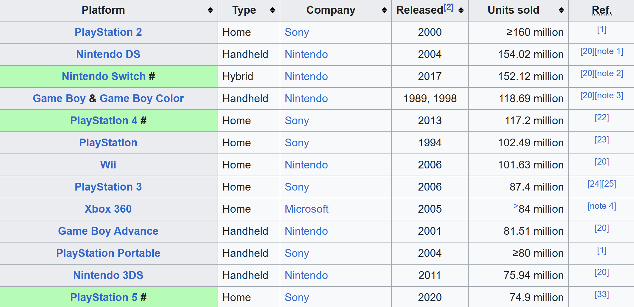 Liste des consoles les plus vendues de tous les temps