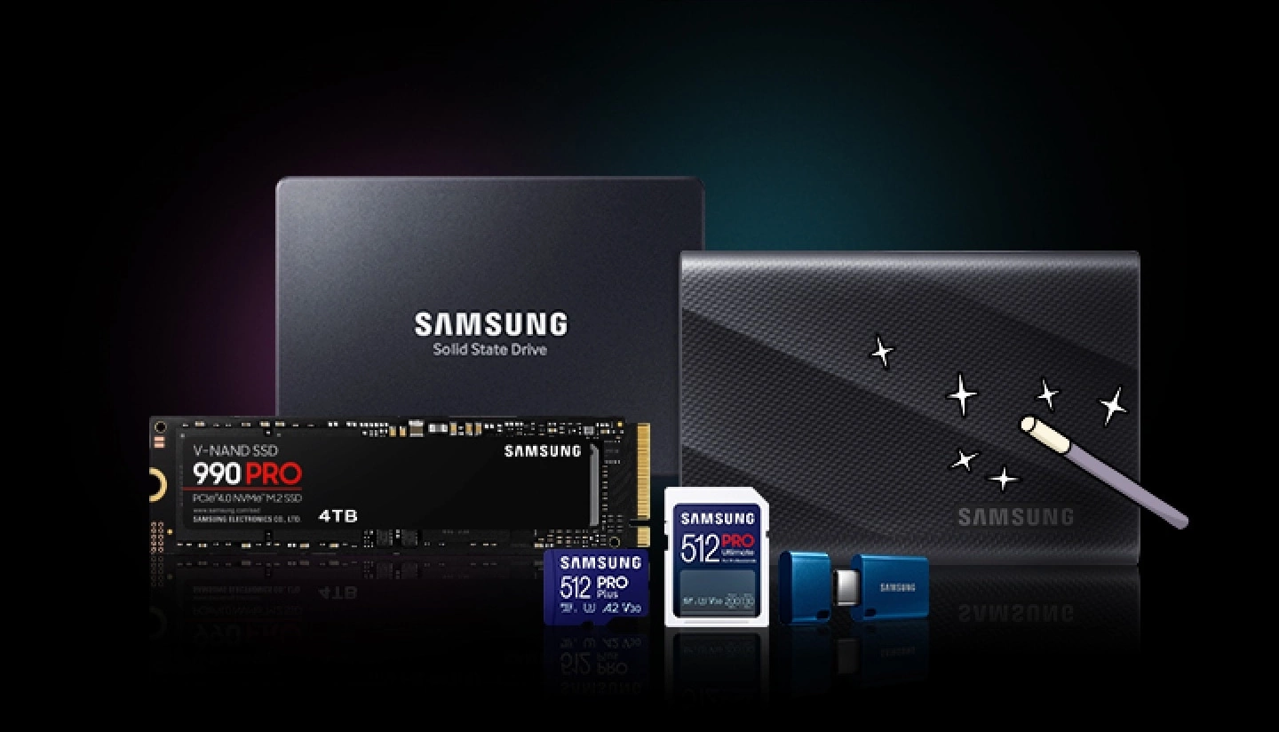 Samsung Magician prend entièrement en charge les produits de mémoire de marque Samsung, y compris les SSD internes, les SSD portables, les cartes mémoire et les clés USB. Les fonctionnalités prises en charge peuvent varier pour les SSD OEM Samsung et les SSD non-Samsung.