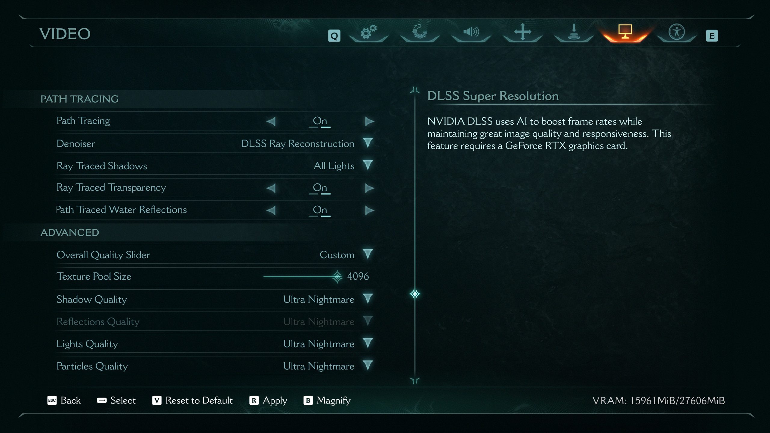 Avant de parler des performances, il est essentiel de passer en revue les options disponibles dans le menu graphique du jeu. Bien qu’il n’y ait pas d’option pour ajuster les réglages du ray tracing, l’activation du Path Tracing permet de modifier certains paramètres.