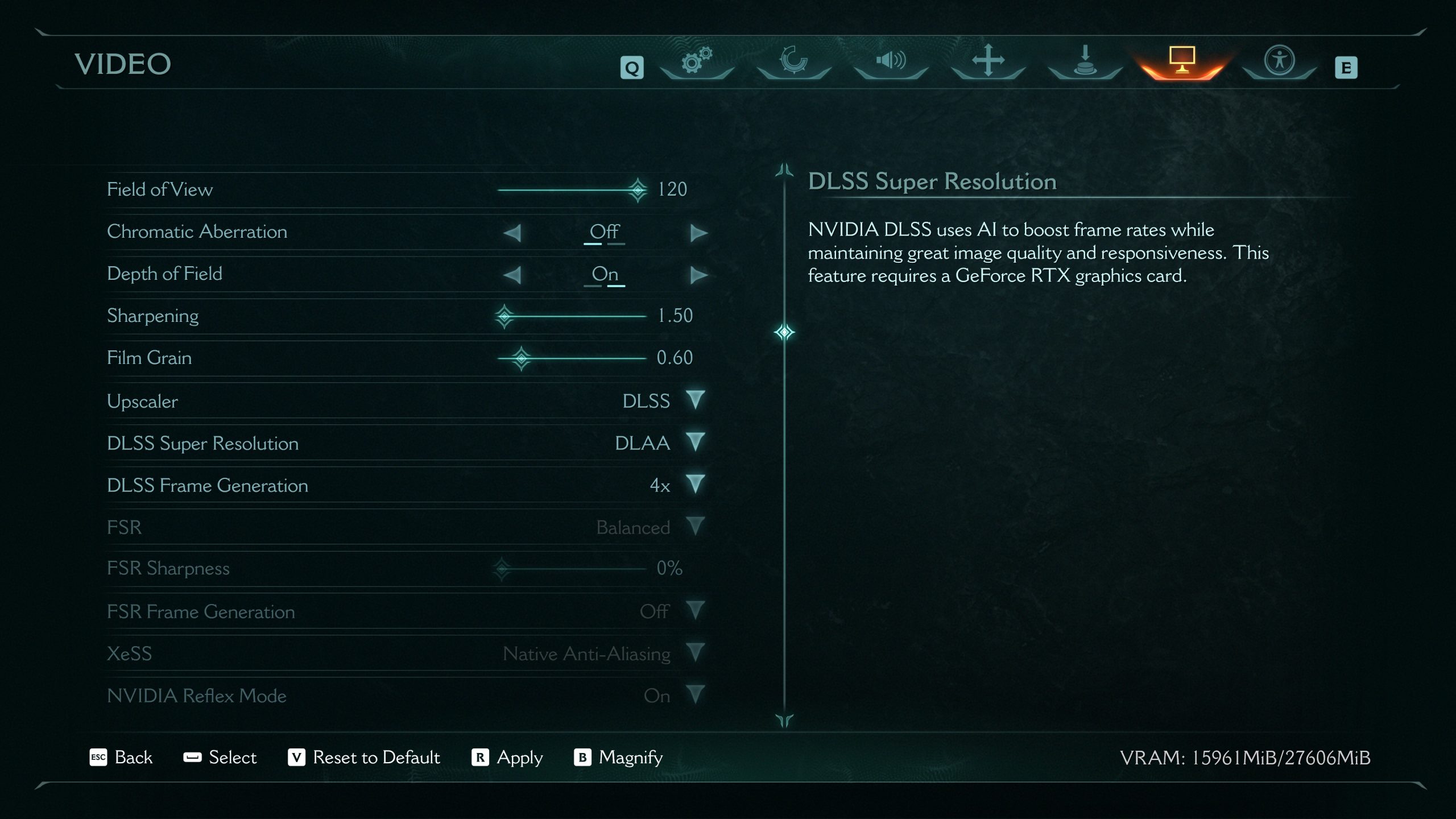 Les modes d’upscaling tels que TAA, DLSS, XeSS et FSR sont tous disponibles. Les modes DLSS & DLAA peuvent se combiner avec la génération d’images pour offrir jusqu’à 4x MFG sur la série RTX 5000 et 2x sur la série RTX 4000.