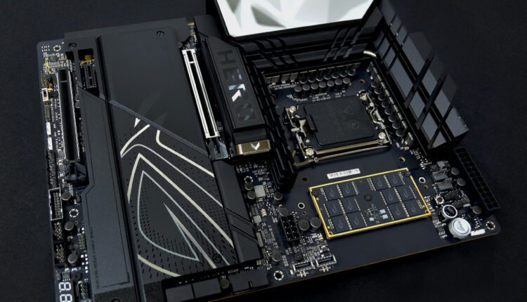 L’utilisateur a mentionné qu’il a obtenu la carte mère d’un ami à Taipei. Celle-ci est une ASUS ROG Maximus Z890 HERO CAMM2, dotée d’un emplacement CAMM2 dédié à la mémoire, non proposé à la vente. Il semble s’agir d’un exemplaire d’ingénierie fourni par un overclocker ou par ASUS.