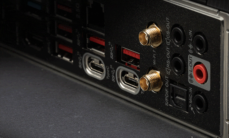 Outre le stockage ultrarapide, la connectivité ininterrompue est cruciale pour des transferts de données rapides et des expériences de mise en réseau sans faille. MSI a également amélioré le module d’antenne Wi-Fi avec un mécanisme de libération rapide, simplifiant l’installation sur n’importe quel PC. Le MAG X870 TOMAHAWK WIFI et le PRO X870-P WIFI sont tous deux équipés de technologies de pointe 5G LAN, Wi-Fi 7 et Bluetooth 5.4. Que vous jouiez ou multitâchiez, vous pouvez avoir confiance qu’ils géreront sans effort toutes les tâches ou applications, garantissant une expérience utilisateur fluide et ininterrompue.