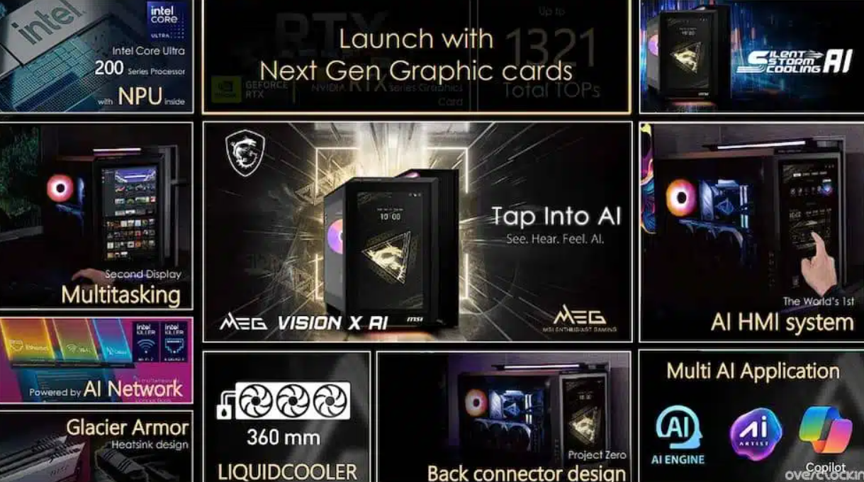 Le MSI MEG Vision X AI se distinguera également par un système de refroidissement liquide AIO de 360 mm, associé à un dissipateur thermique au design Glacier Armor. Ces caractéristiques garantissent une dissipation thermique efficace, essentielle pour maintenir des performances optimales sous charge.