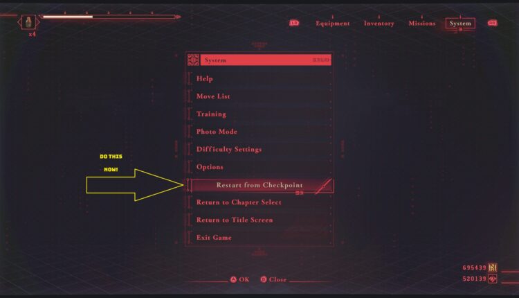 Réussir une mission sans objet ni mort constitue un défi, même en difficulté normale. Cependant, il est possible de profiter du système de checkpoints. Lorsque la santé est test, il suffit de redémarrer à partir du checkpoint pour éviter de repartir de zéro. Cette méthode classique des jeux PlatinumGames s’applique également à Ninja Gaiden 4.
