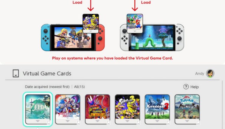Cartes de Jeu Virtuelles : Les jeux numériques, contenus additionnels (DLC) et certaines applications gratuites achetés sur Nintendo Switch deviennent des cartes de jeu virtuelles affichées dans un menu dédié. Il est possible de charger ou d’éjecter virtuellement ces cartes entre deux consoles Nintendo Switch au maximum. Par ailleurs, le prêt de ces cartes est autorisé au sein d’un groupe familial lié au même compte Nintendo, facilitant le partage entre proches.
